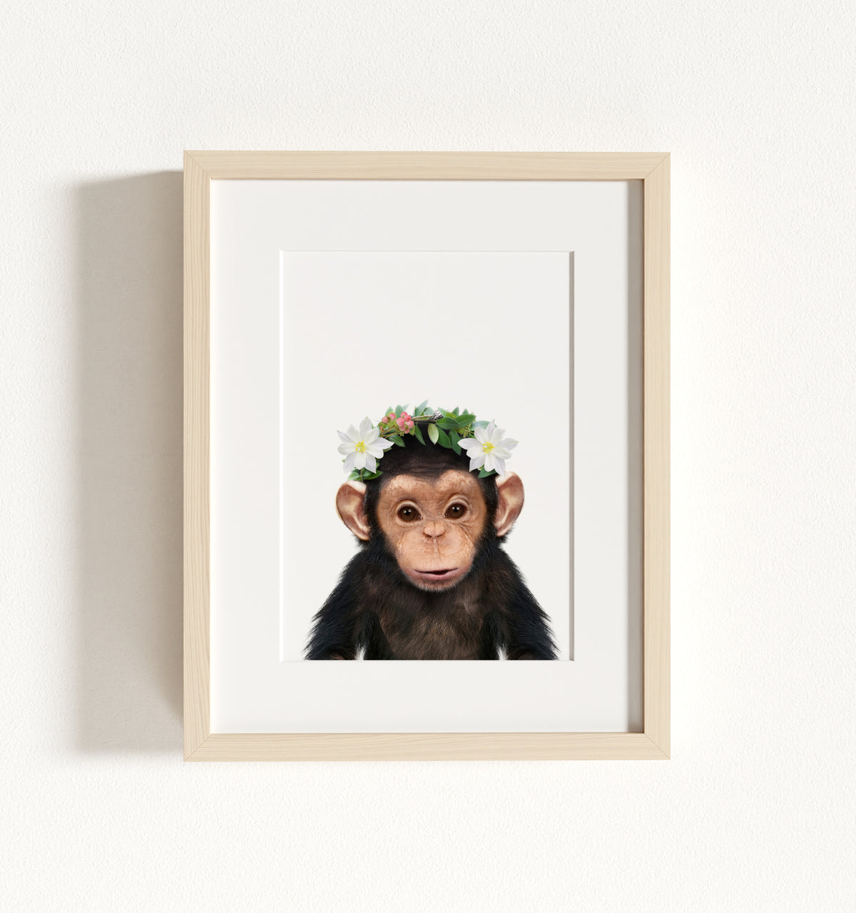 This cheeky baby chimpanzee is ready to swing into your little one’s nursery and fill it with fun! With its playful expression and wide-eyed charm, this baby chimp adds a sense of joy and adventure to any room. Perfect for a jungle or animal-themed nursery, this print brings the energy and excitement of the wild right into your baby’s space, making it feel full of life.