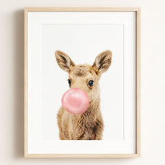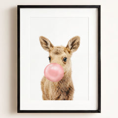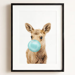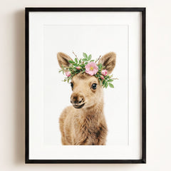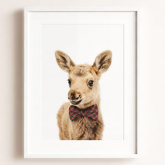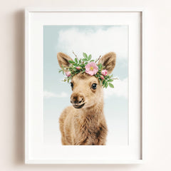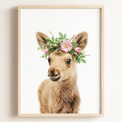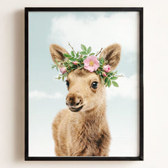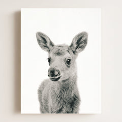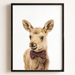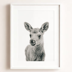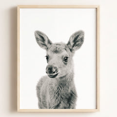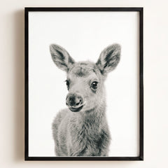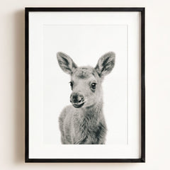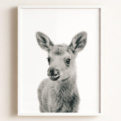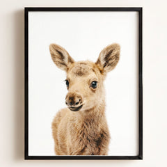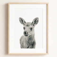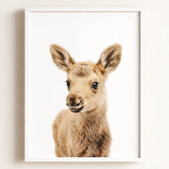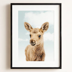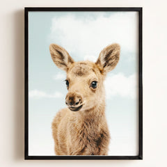 This adorable baby moose print brings the beauty of the forest into your little one’s nursery. With its soft fur and tiny antlers, this baby moose adds a gentle, nature-inspired touch to your baby’s room. Perfect for a woodland-themed nursery, this print creates a serene and calming environment where your child can rest and play.