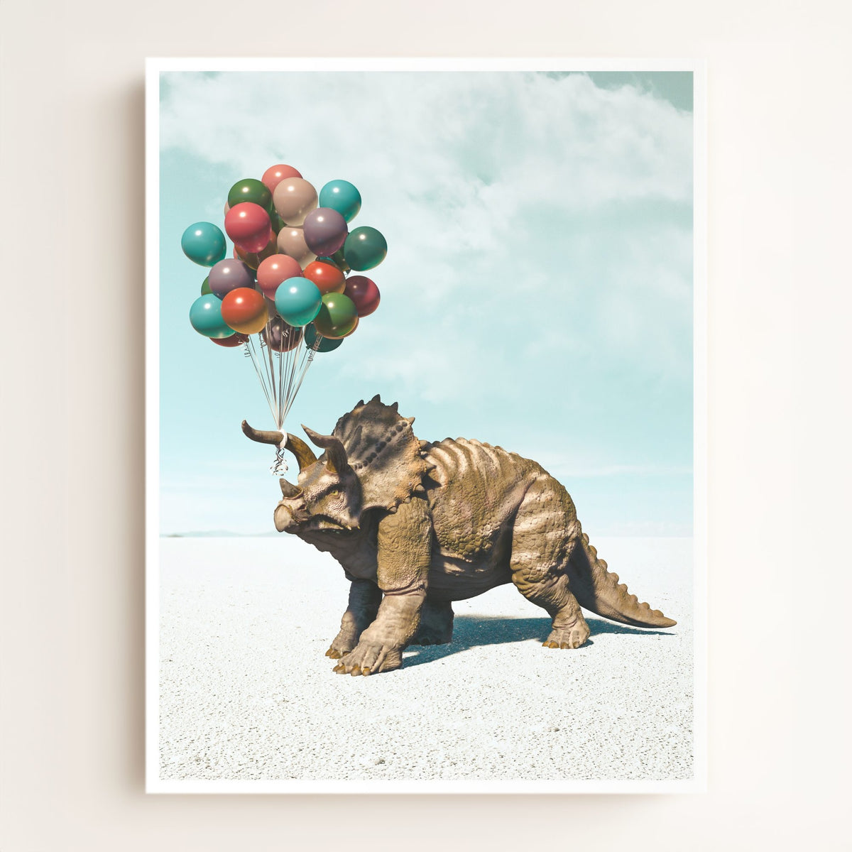 Triceratops with Balloons Art Print