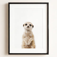 This playful baby meerkat is here to bring smiles and fun to your little one’s nursery! With its curious eyes and upright stance, this meerkat print adds a touch of adventure and personality to your child’s space. Perfect for a safari or animal-themed room, this little meerkat will quickly become your baby’s favorite friend, watching over them with a sense of playful curiosity.