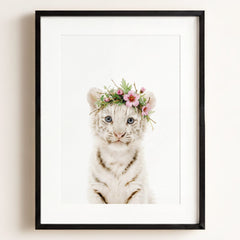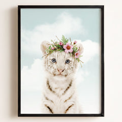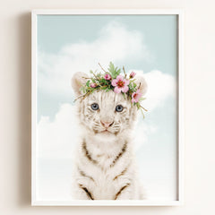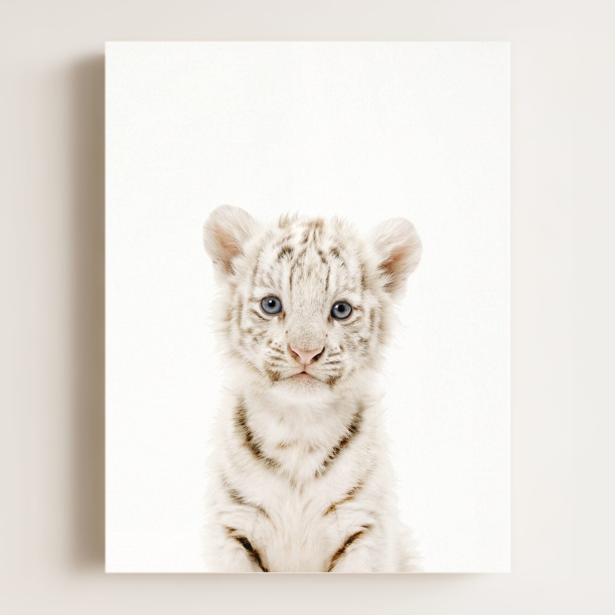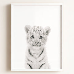 Bring a bit of wild wonder into your baby’s nursery with this striking white tiger print! With its soft blue eyes and gentle expression, this tiger is the perfect mix of bold and beautiful. Whether you’re creating a jungle-themed nursery or looking for a unique animal to brighten up your little one’s room, this baby white tiger will make a memorable statement.