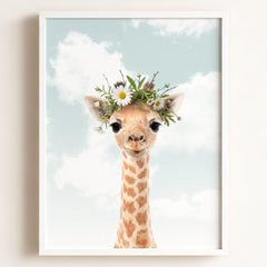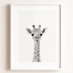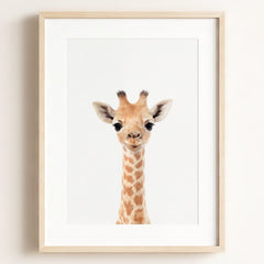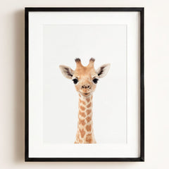 Stretching high with its long neck and playful eyes, this giraffe art print brings a whimsical touch to your baby’s nursery. The sweet and friendly expression on the giraffe’s face will quickly become a favorite sight for your little one, brightening their room with warmth and charm. Whether it’s hanging above the crib or beside their bookshelf, this giraffe offers a gentle reminder of the beauty and wonder of nature—making every glance feel like a safari adventure.