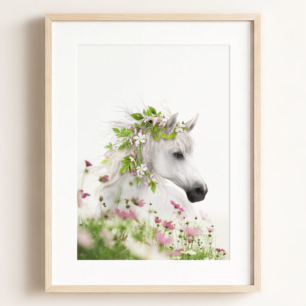 Horse with Flower Crown and Wildflowers