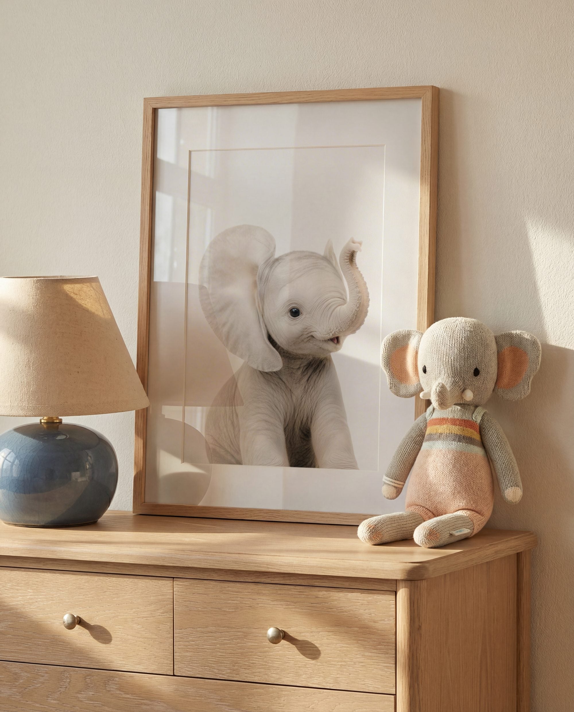 Meet your little one’s new best friend—a sweet, happy, and gentle elephant who’s ready to fill their nursery with love and warmth! With its calm and friendly face, this charming elephant print brings a sense of security and peacefulness to any baby room. It’s the perfect companion for bedtime, offering your baby a comforting presence as they drift off to sleep, while also introducing them to one of nature’s most beloved animals. This thoughtful addition will have your child smiling from ear to ear every time they glance up.